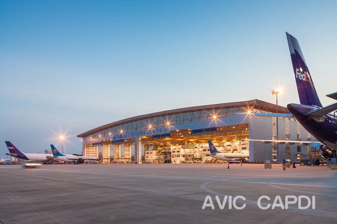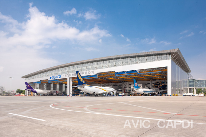 Размер ангара: 184м × 84м × 19м (длина пролета, глубина, высота нижнего пояса) Строительная площадь: 66840кв.м Дата завершения: 2013г |