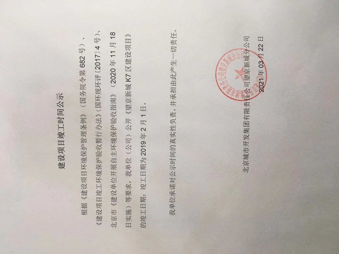 《望京新城K7區建設項目環境影響報告書》于2002年12月完成;2002年12月18日獲得《北京市環境保護局關于望京新城K7區建設項目環境影響報告書的批復》(京環保監督審字[2002]456號)。